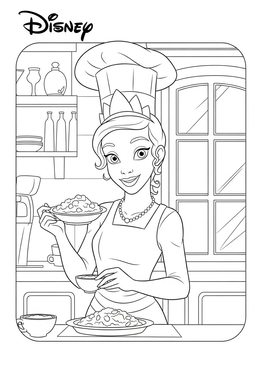 Desenho da Princesa da Disney Cinderela na cozinha para colorir